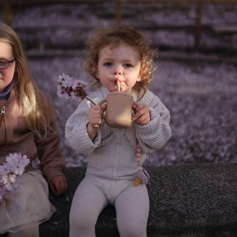 De beker is gemaakt van 100% voedselveilig silicone en wordt geleverd met een afneembaar deksel en een zacht rietje voor baby’s tandvlees en eerste tandjes.