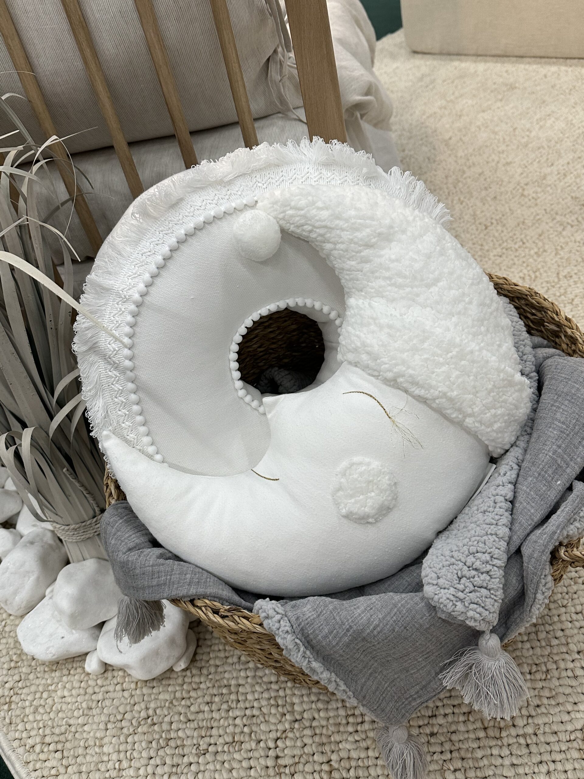 Dit maanvormige kussentje biedt zachte ondersteuning voor het hoofd en de nek van je kleintje tijdens dutjes en speeltijd.