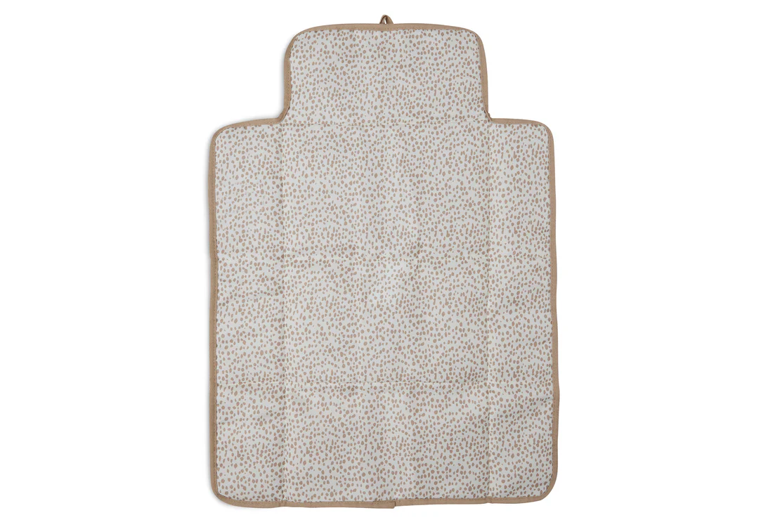 Het verschoningsmatje is waterafstotend, afneembaar en heeft een zachte teddy buitenkant. De sluiting is gemakkelijk gemaakt met strikbare koordjes. Na een ongelukje kunnen ouders het matje gemakkelijk wassen.